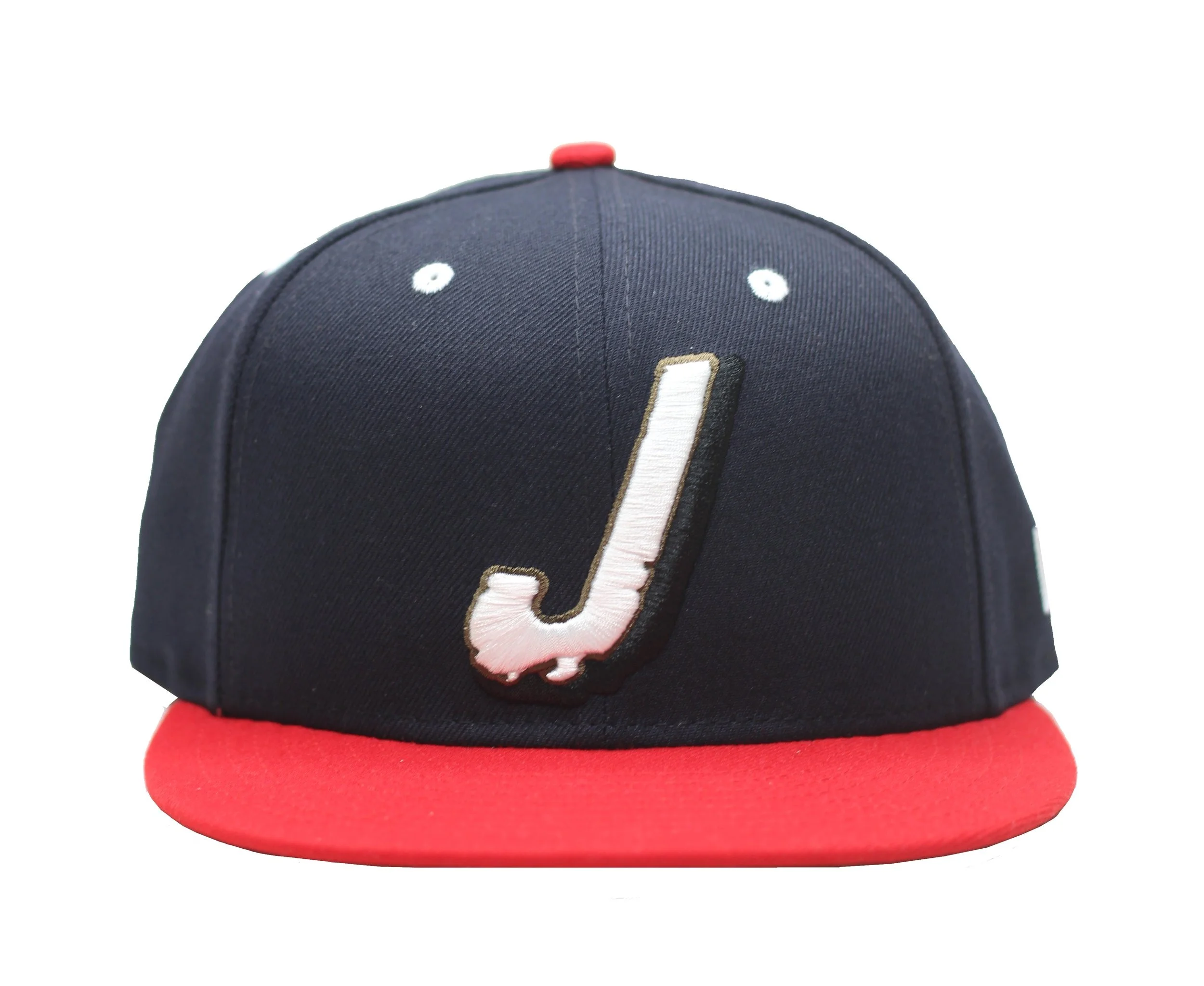 Navy/Red New Era 59FIFTY fitted hat with J raised embroidered logo
